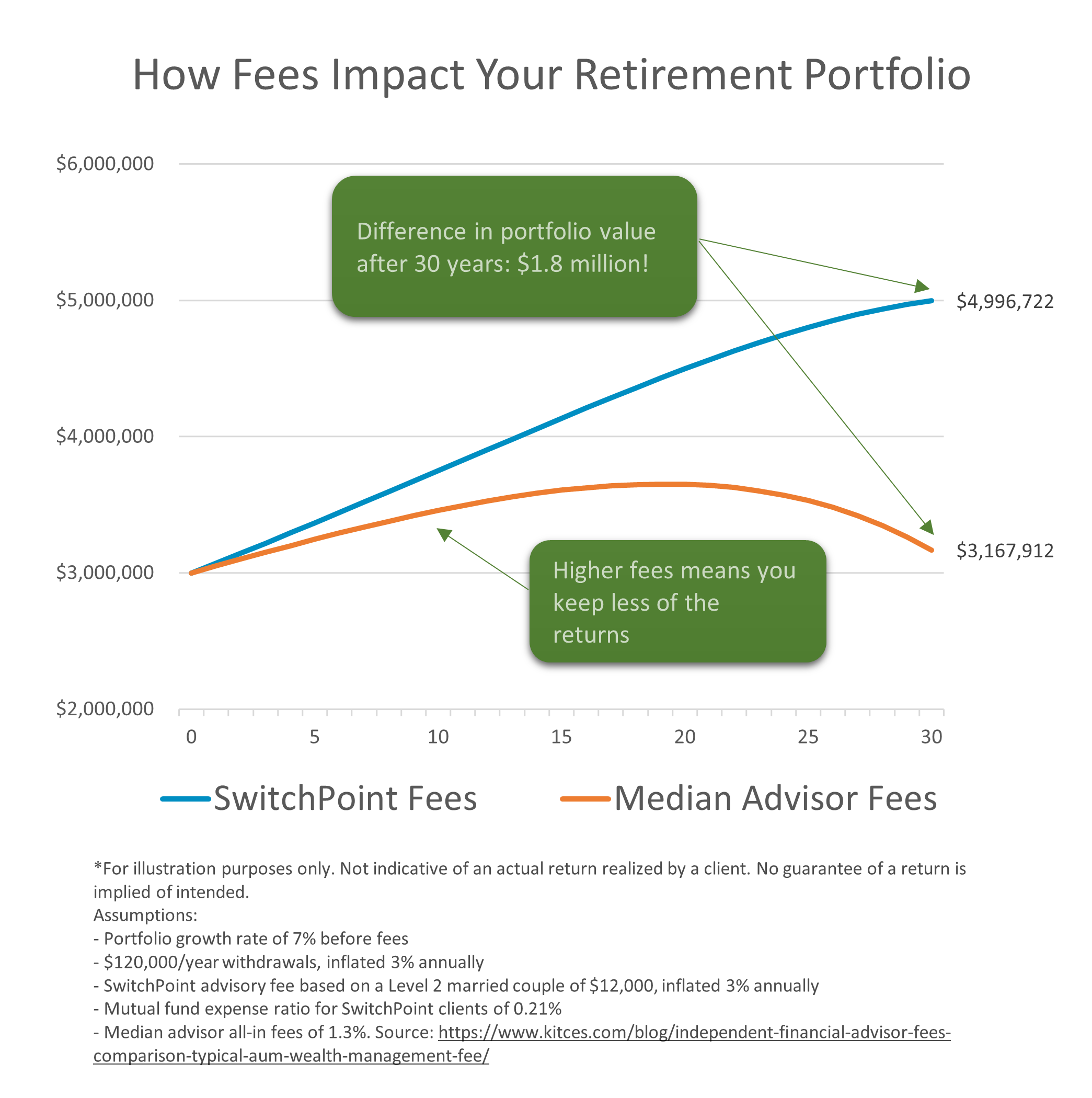 In investing, costs matter. Just a 1% difference in fees can add up to 100’s of thousands of dollars over your lifetime.